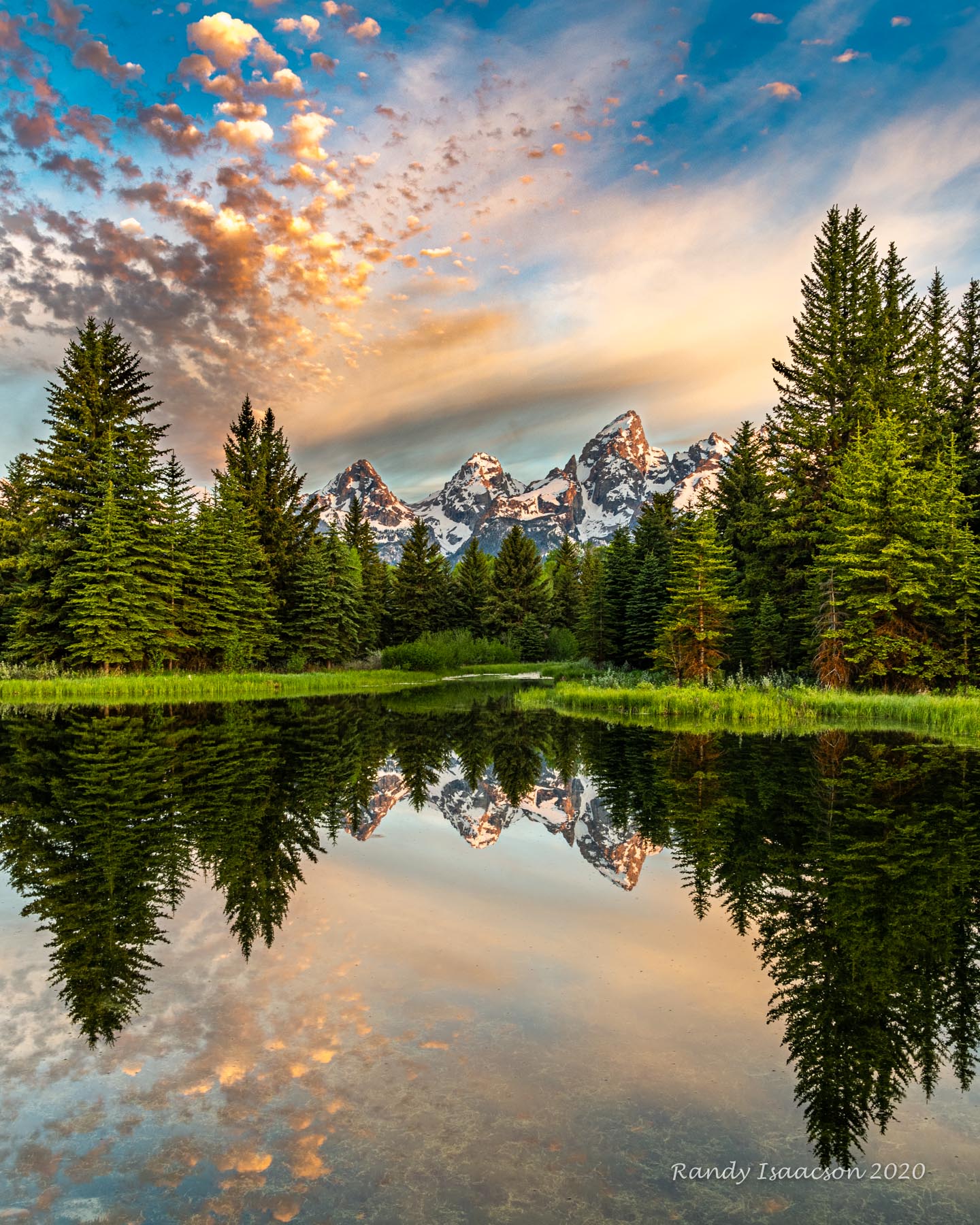 After taking this image I hung around “North Schwabey” for quite awhile enjoying the view and walking along the stream.  As the sky lit-up I turned around and began to walk back to the iconic view of Schwabacher’s Landing and noticed an amazing OMG sky.  It took me about 5 minutes to walk back and less than a minute to set-up my tripod to take this picture up the river a bit from many other photographers.  I got a real eye-catcher of a shot but I have to say that I like my “North Schwabey” shot better because it has a clear message.  What do you think?